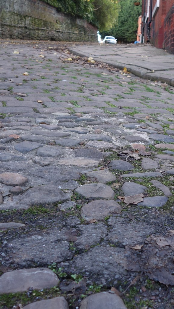Framing the wonderful buildings of Dodge Hill are the historic roads and pavements. Running down the main hill is a rare surviving example of 16th century (that’s pre-Shakespeare!) pebble cobbles. These are complemented by a range of sett cobbles (like those in Coronation Street) and 120-year-old stone paving. A large part of this historic streetscape was ripped out by Stockport Council in 2022. Residents are fighting to get it back – you can follow the campaign on our Saving the Paving page.