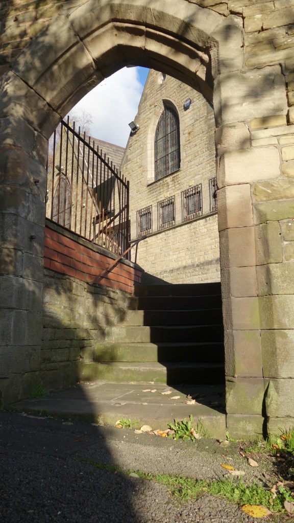 The lower part of Dodge Hill was lost to the construction of the M63 (now M60) motorway in 1980. Just surviving the bulldozers, the meeting rooms sit atop the red sandstone cliffs looking out over central Stockport. Opened as a school in 1857 and after a brief spell as a synagogue, the building became the permanent home for Stockport’s Christadelphian community in 1902 and is still going strong. Around 70 Christadelphians meet here each Sunday.